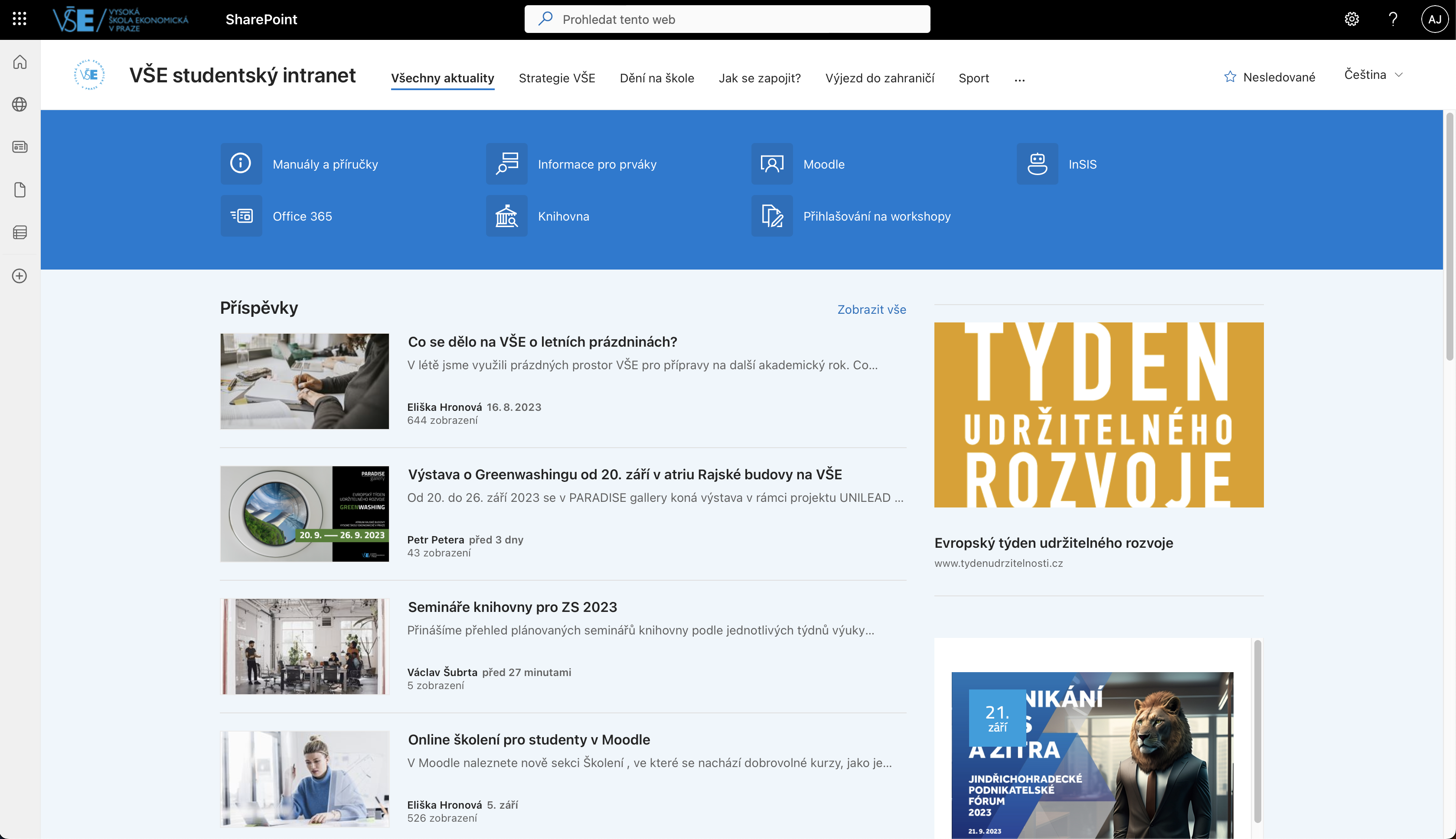 s radostí vám představujeme studentský intranet VŠE! Tento intranet byl vytvořen s cílem poskytnout vám jednoduchý a přehledný přístup ke všem klíčovým informacím týkajících se vašeho studia a dění na VŠE.