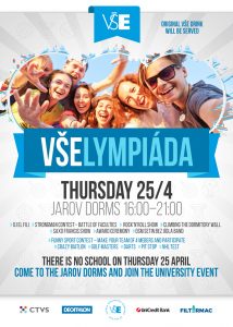 In the afternoon (4-9 pm), you can look forward to a team competition VŠElympiada, a concert, a strongman contest or climbing the dormitory wall.