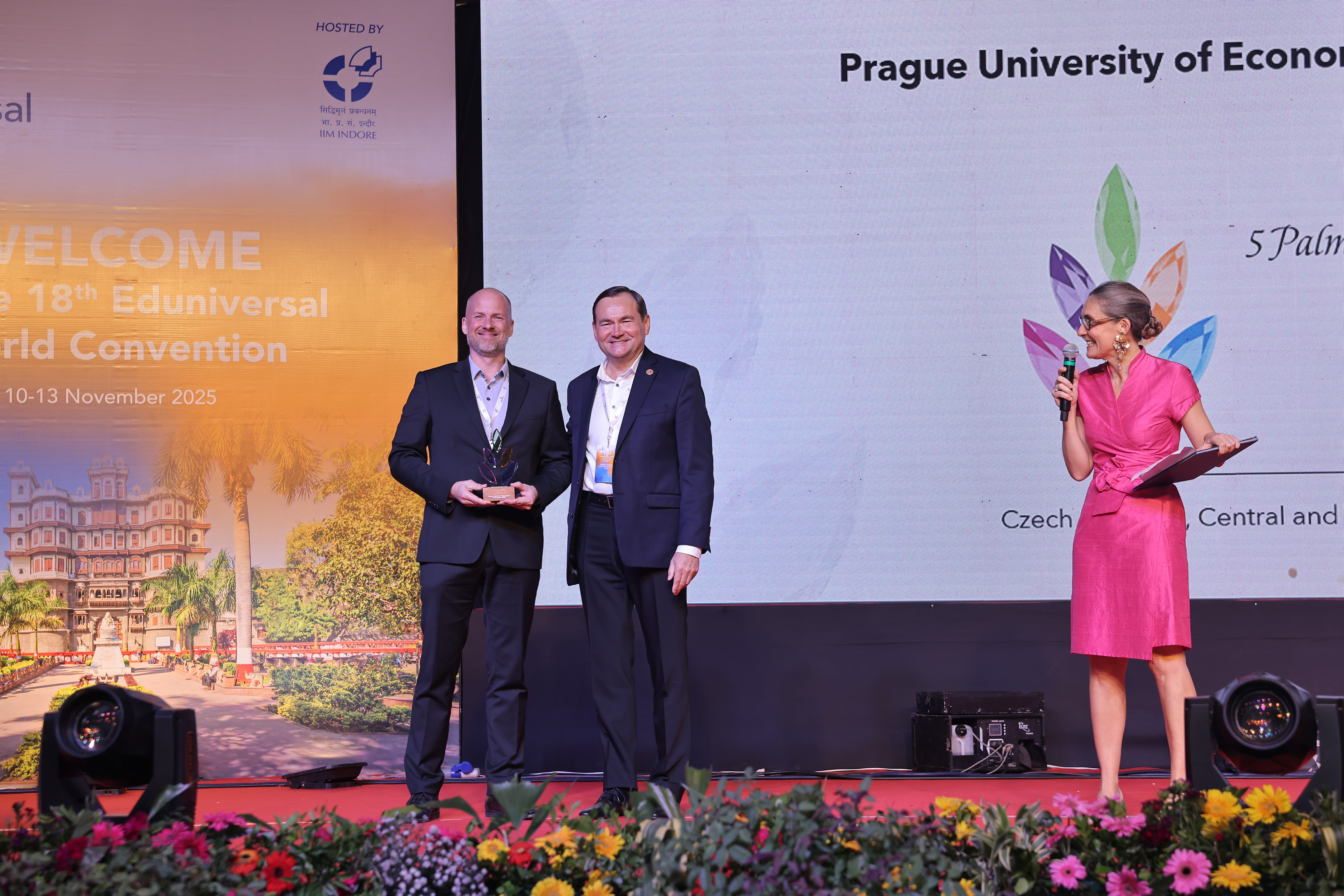 This year’s award ceremony took place in India, where the award on behalf of VŠE was accepted by the Vice-Rector for Science and Research, Prof. Ing. Martin Lukeš, Ph.D. His participation and acceptance of the award symbolically underscore the university’s international engagement and its active role within the global academic community.