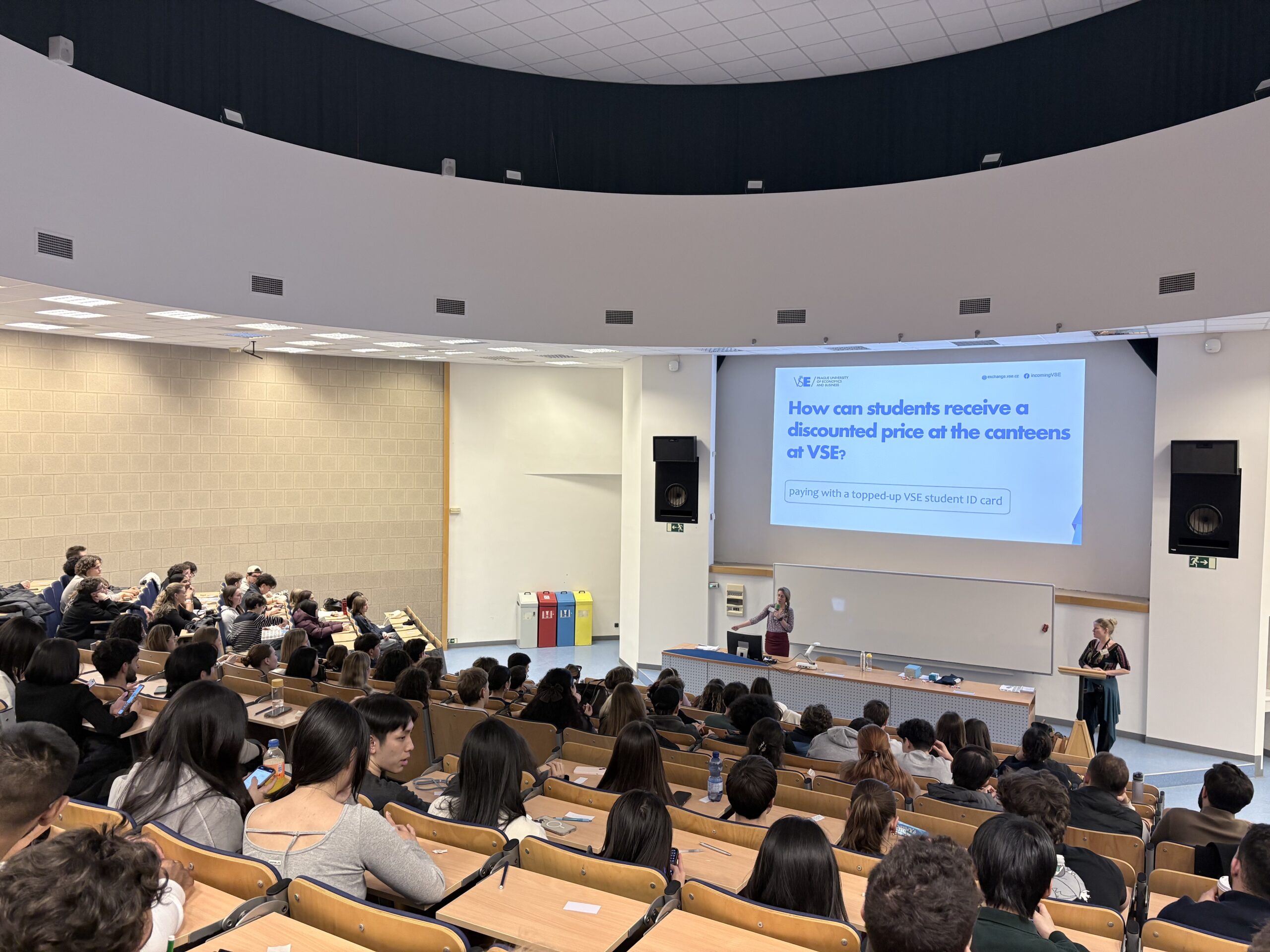 All exchange students were officially welcomed during the traditional Welcome Ceremony, taking place this time in the Likešova Auditorium. The evening also included the announcement of the Team Game winners, who received a VSE merch.