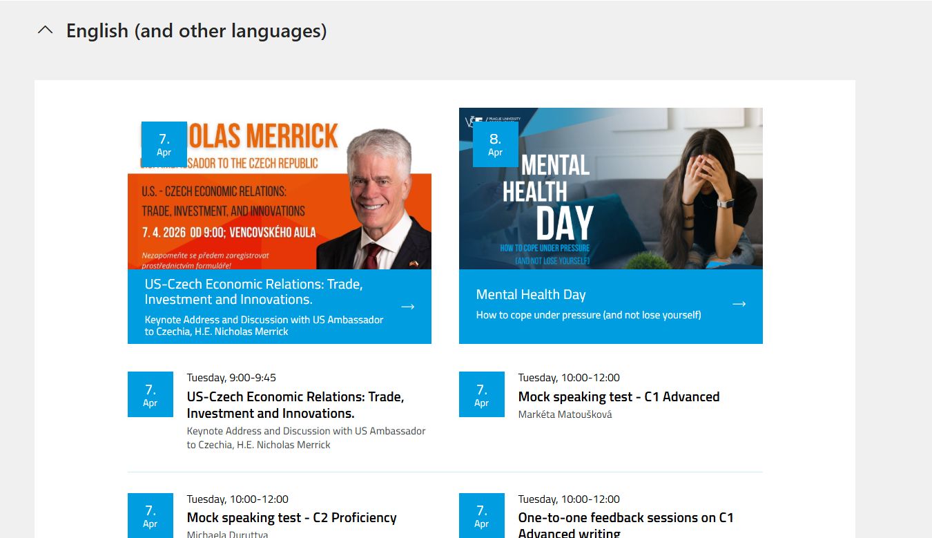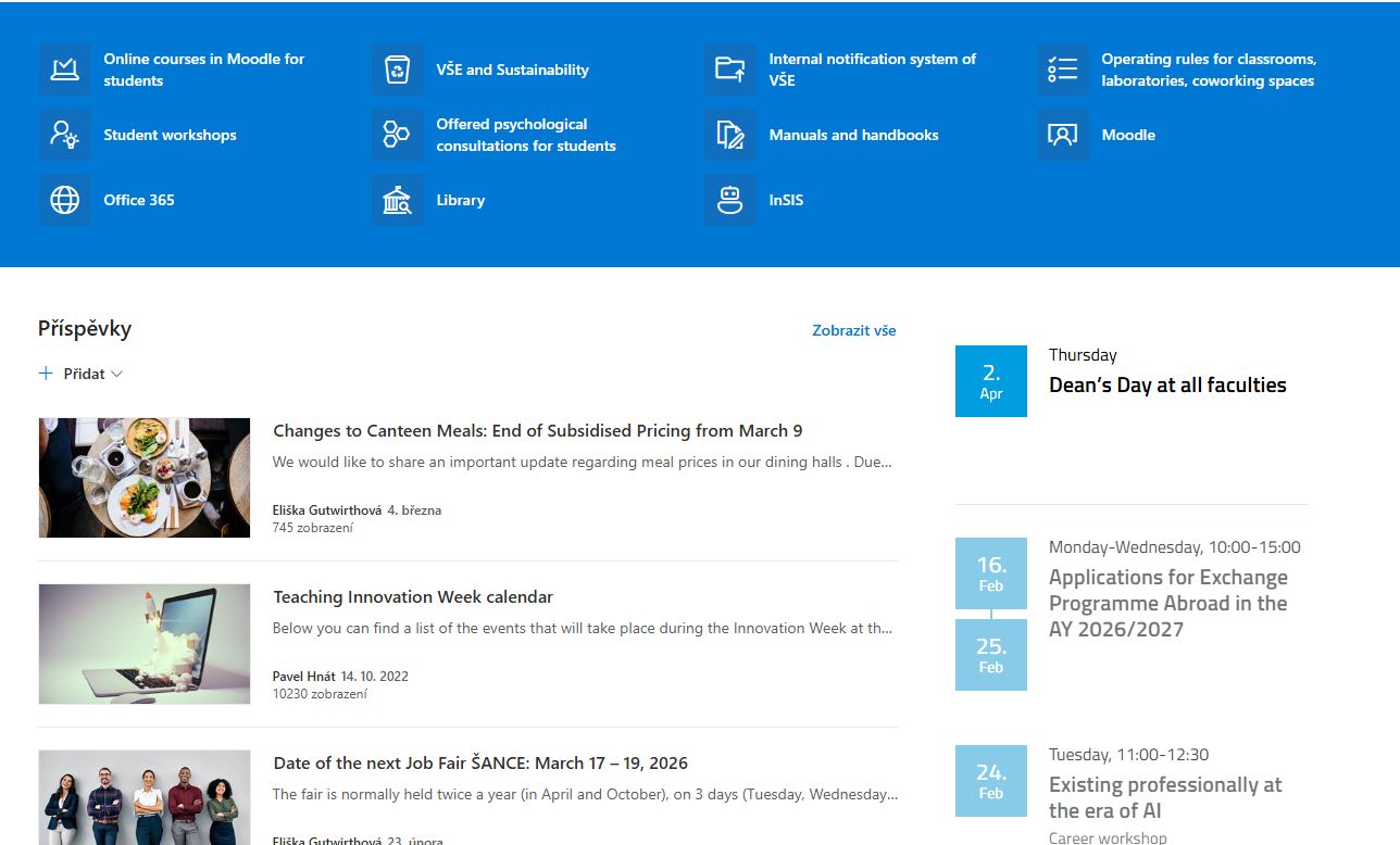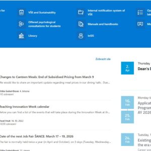 The Student Intranet is where you’ll find everything you need to know about life at VŠE. Clear, reliable, and always up to date. It’s perfect if you want to make sure you don’t miss anything important.