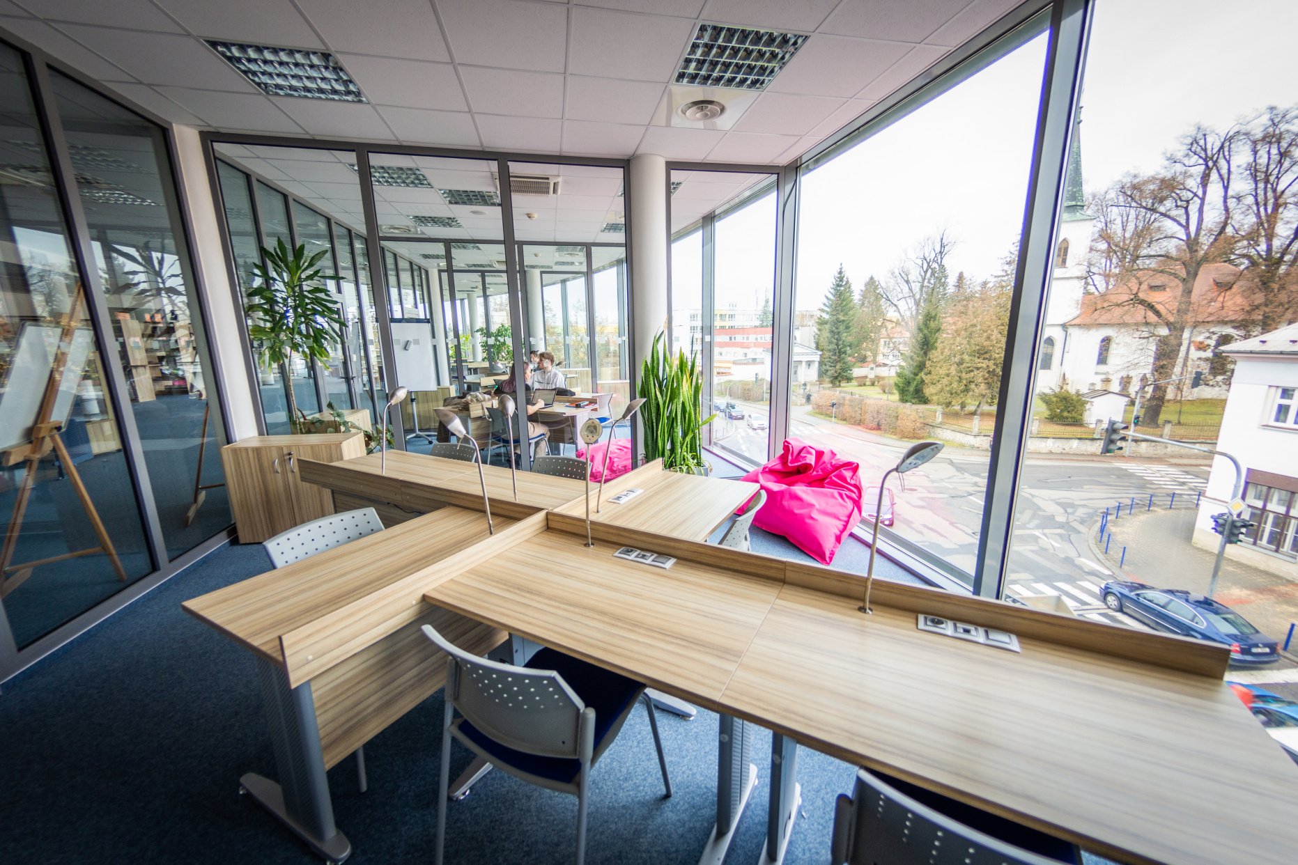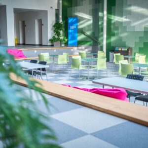 Součástí rozvoje kampusu jsou také nové prostory pro spolupráci a projektovou práci, například coworkingové zóny, které propojují studenty napříč obory.